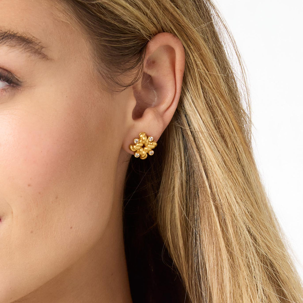 Each stud features a knot of twisted golden rope accented by four pavé embellishments.